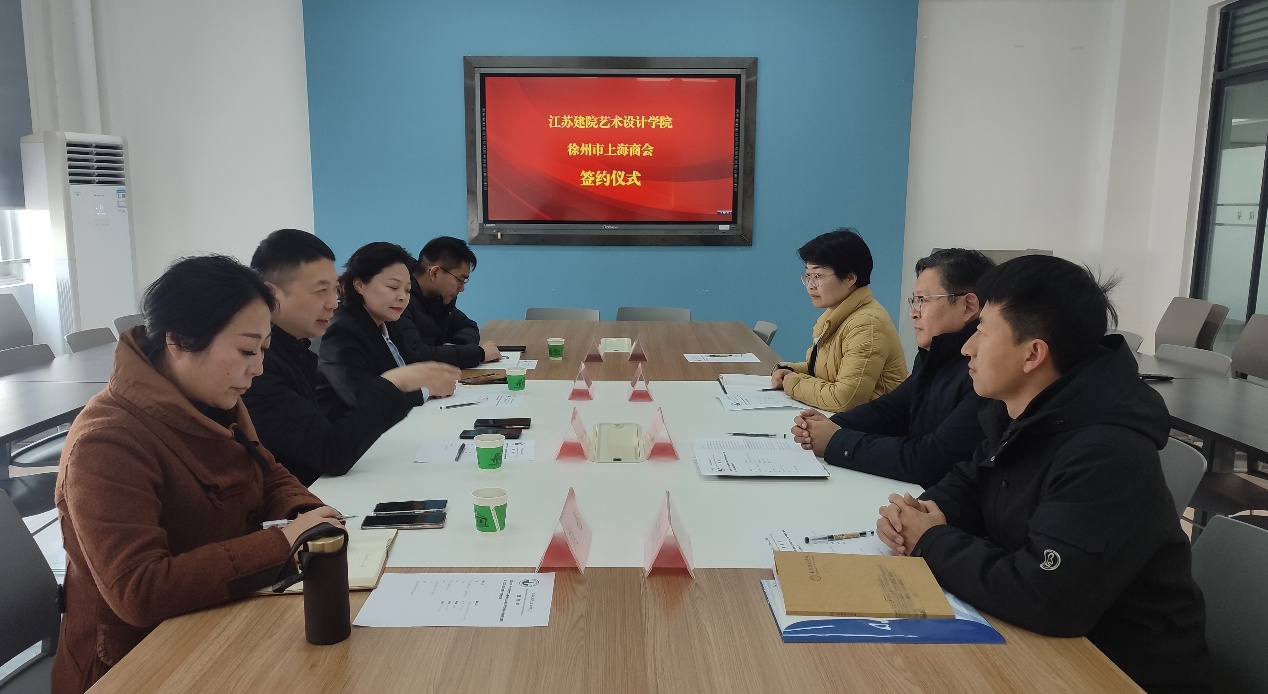 2月19日,在311会议室我院与徐州市上海商会建立框架合作并签订合作协议。徐州市上海商会会长、上海振华投资集团总经理周易,江苏金证环境科技有限公司董事长韩方燕、徐州市上海商会秘书长刘惠、中科振华文旅科技(江苏)有限公司负责人陈峰,我院党总支书记方升、副院长毕雪微、办公室主任张孝军以及广告艺术设计专业主任肖永杰共同出席签约仪式。